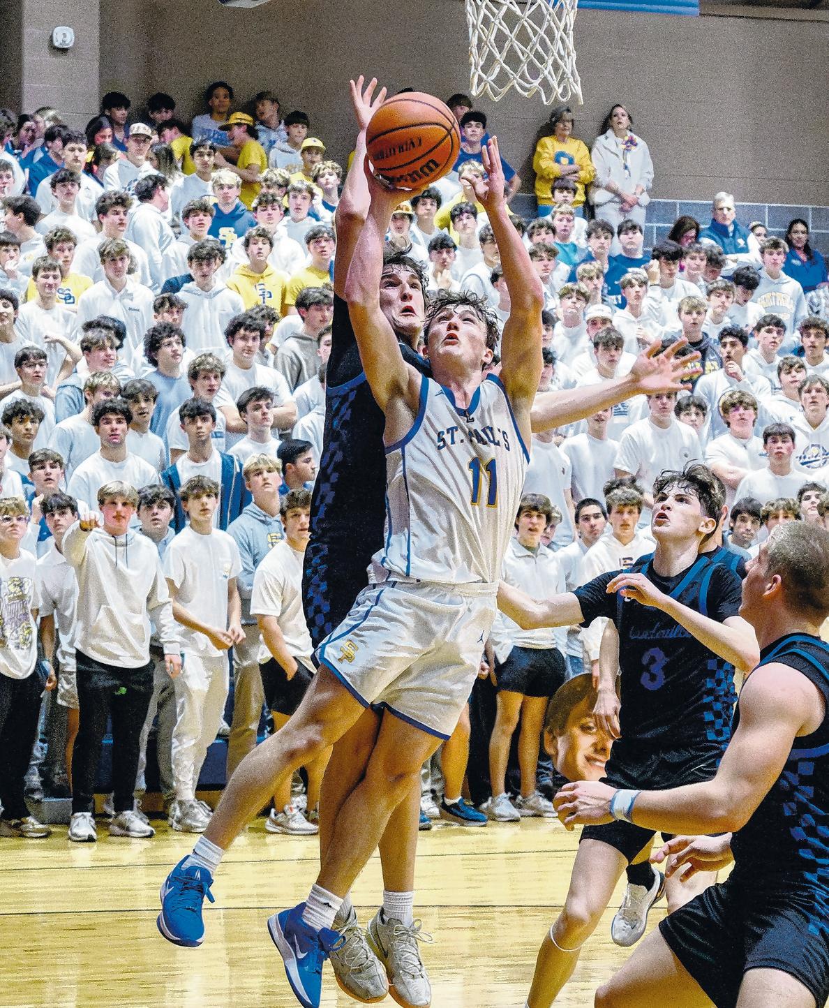 This time, however, with tensions at a fever pitch St. Paul’s finished strong and pulled away for a 54-40 nondistrict victory at the Gene Bennett Sports Complex.