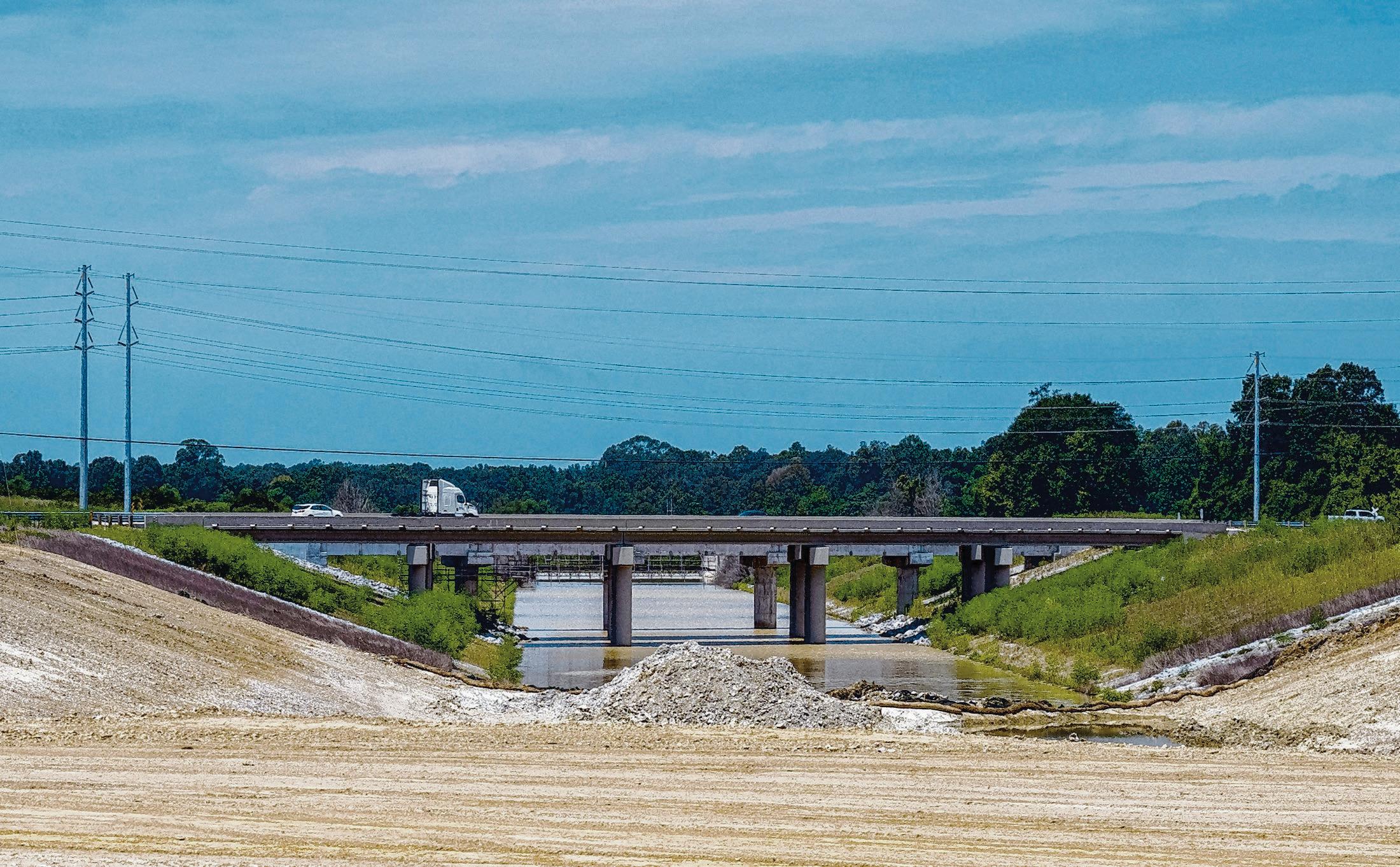 Traffic drives over a bridge on U.S 61 that is part of the finished section of the 8-mile long channel that will make up the bulk of the Comite River Diversion Canal in Zachary.