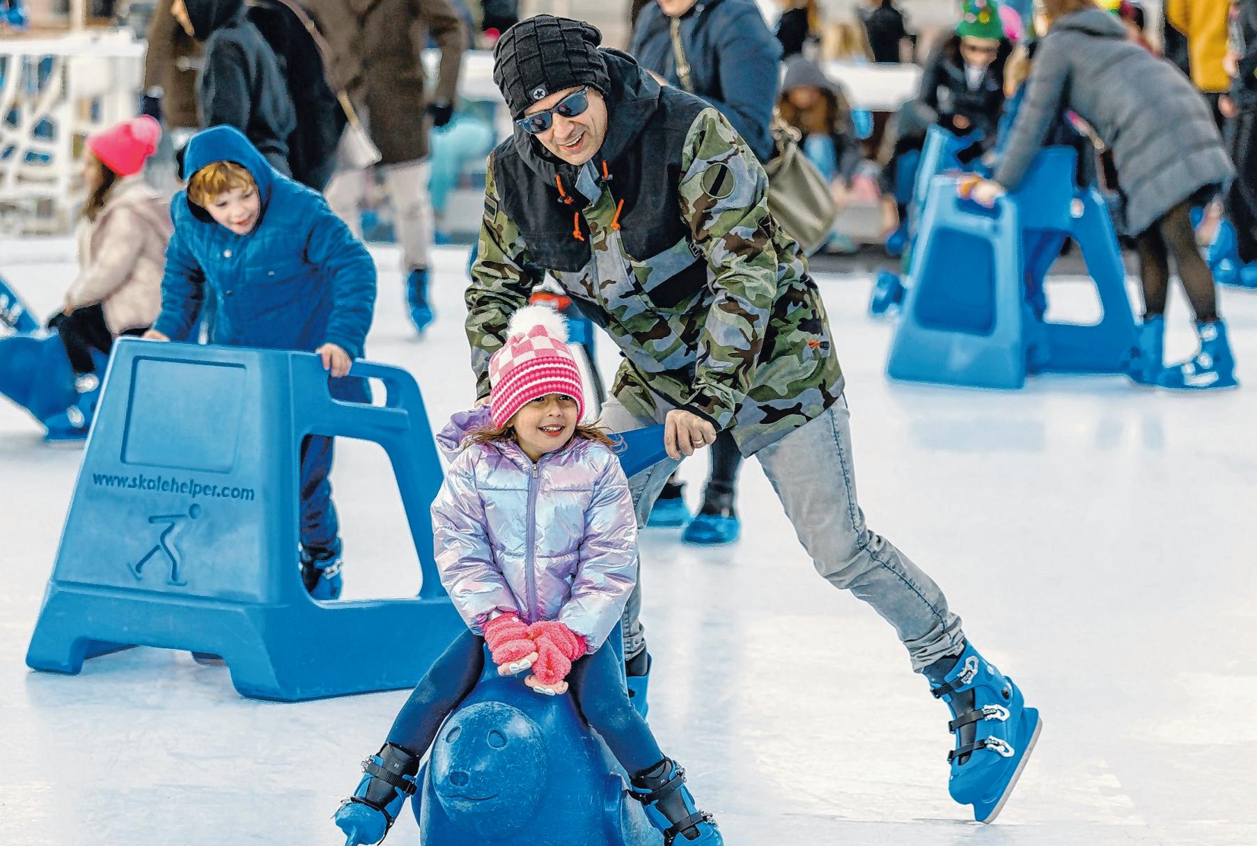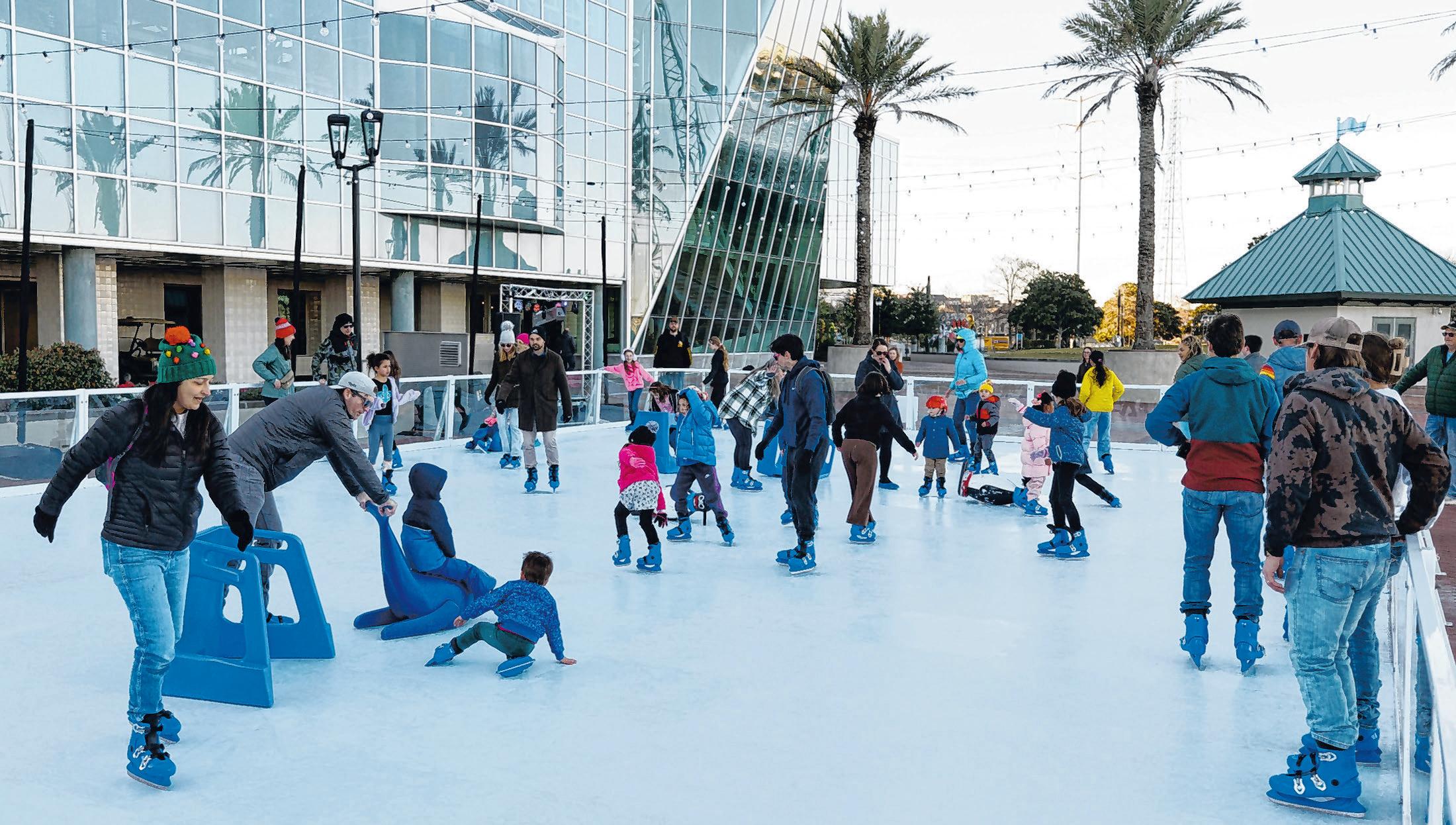Faux snow was in the forecast recently outside the Audubon Aquarium during a two-evening event that also turned the area along the Mississippi River into an ice rink. The synthetic ice gave New Orleanians a chance to try their hand at ice skating — no cold weather required.