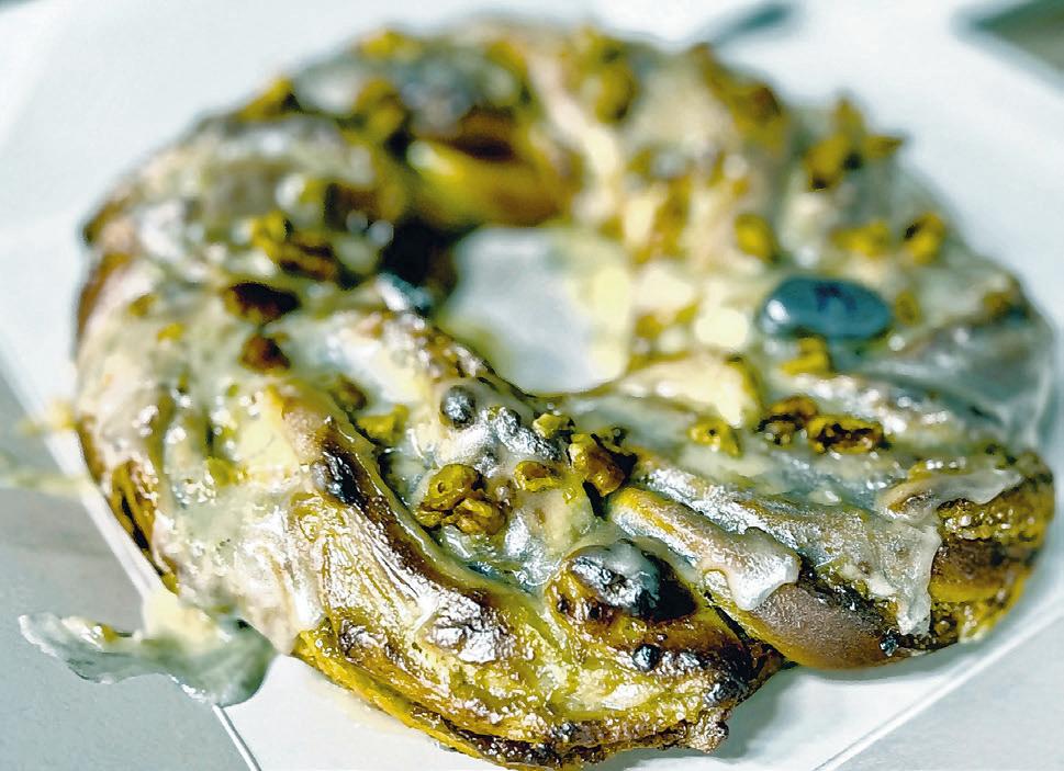 The Goddess is a king cake made in partnership with the Krewe of Muses and the New Orleans Center for Creative Arts and contains goat cheese, fig, candied orange and toasted walnuts, topped with a silver-dusted icing