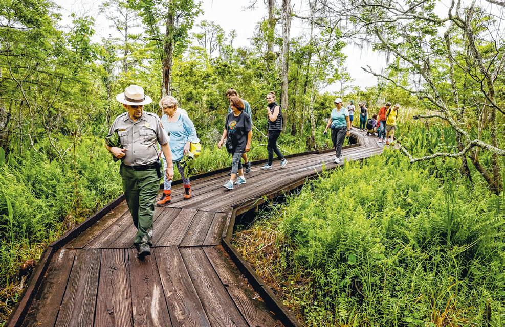 After Hurricane Ida caused extensive damage throughout the Preserve in 2021, two Disaster Supplement awards provided funding for the improvement plan. The plan includes rebuilding 1.3 miles of elevated boardwalk with durable composite materials and wooden guardrails and removing 1.1 miles of damaged trail with restoration to natural wetland conditions. It also provides for a larger, more accessible education center, which will become the new visitor center Demolition and construction for trail improvements are scheduled to begin in February and will be completed in phases over two years. Trails will reopen to the public as each phase is finished. Construction for the visitor center is expected to be completed by 2029. The Barataria Preserve, located 17 miles south of New Orleans, encompasses more than 26,000 acres of Louisiana wetlands, including bottomland hardwood forest, cypress swamp, freshwater and intermediate marshes, bayous and canals. It offers boardwalks and trail networks that allow visitors to experience diverse wildlife, including alligators, snakes and more than 200 species of birds.