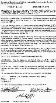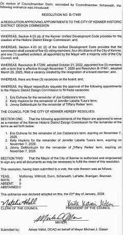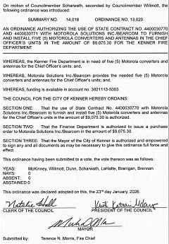 By virtue of a Writ of Seizure andSaledi‐rected to me by theHonorable Judges of Civil District Court forthe Parish of Orleans, in the aboveentitled cause, Iwillpro‐ceed to sell by public auction, on theground floor of theCivil District Court Building,421 Loyola Avenue in theFirst Dis‐trictofthe City on January29, 2026, at 12:00 o'clocknoon, thefollowing describedprop‐erty to wit: 14551 DUANERD NEWORLEANS LA 70128 LOT: 21, SQUARE:E, PART B THIRDMUNICI‐PALDISTRICT ACQMIN: 796087 WRIT AMOUNT: $118,004.92