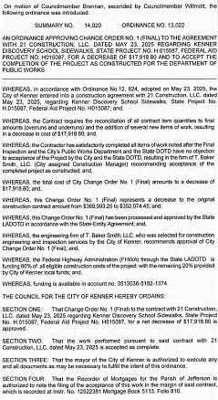 B. Consider Approval of aResolutionAwardinga ContracttoC.D.L. Electric Company,Inc. forthe Crossing SignalUpgrades at Esplanade Avenue in the Amount of $643,472.37