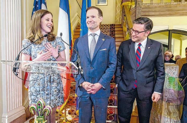 King Gray Stream and Queen Sarah Heebe took place at the home of France’s ambassador to the United States, Laurent Bili. “It’s good to see you,” said U.S. House Speaker Mike Johnson, referring to the travel woes. “It’s so cold. Traffic is such a delight. It’s like we’re in Baton Rouge.” In lighthearted remarks in which he occasionally went into his wellknown imitation of President Donald Trump, Johnson paid tribute to the long-standing friendship between France and the U.S. — Louisiana in particular Johnson, who is from Benton,