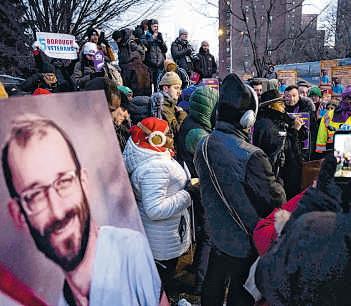 Aphoto of Alex Pretti is displayedduring avigil by nurses and their supporters outsideVANyHarbor Healthcare System in Newyork on Thursday