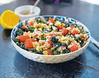 can be used to feed livestock and also to produce ethanol. In the culinary arena, it can be cooked into a cereal and porridge; used as a base in grain bowls, salads and soups; fermented in alcoholic beverages; and crushed like sugar cane or beets to produce a syrup. It also can be popped like corn for a nutritious snack. Why build out your pantry with a bag of soft white sorghum flour or a package of the golden, couscouslike grain? Not only is sorghum a natural source of hearthealthy antioxidants, but whole grain sorghum is a great source of fiber and protein. It’s