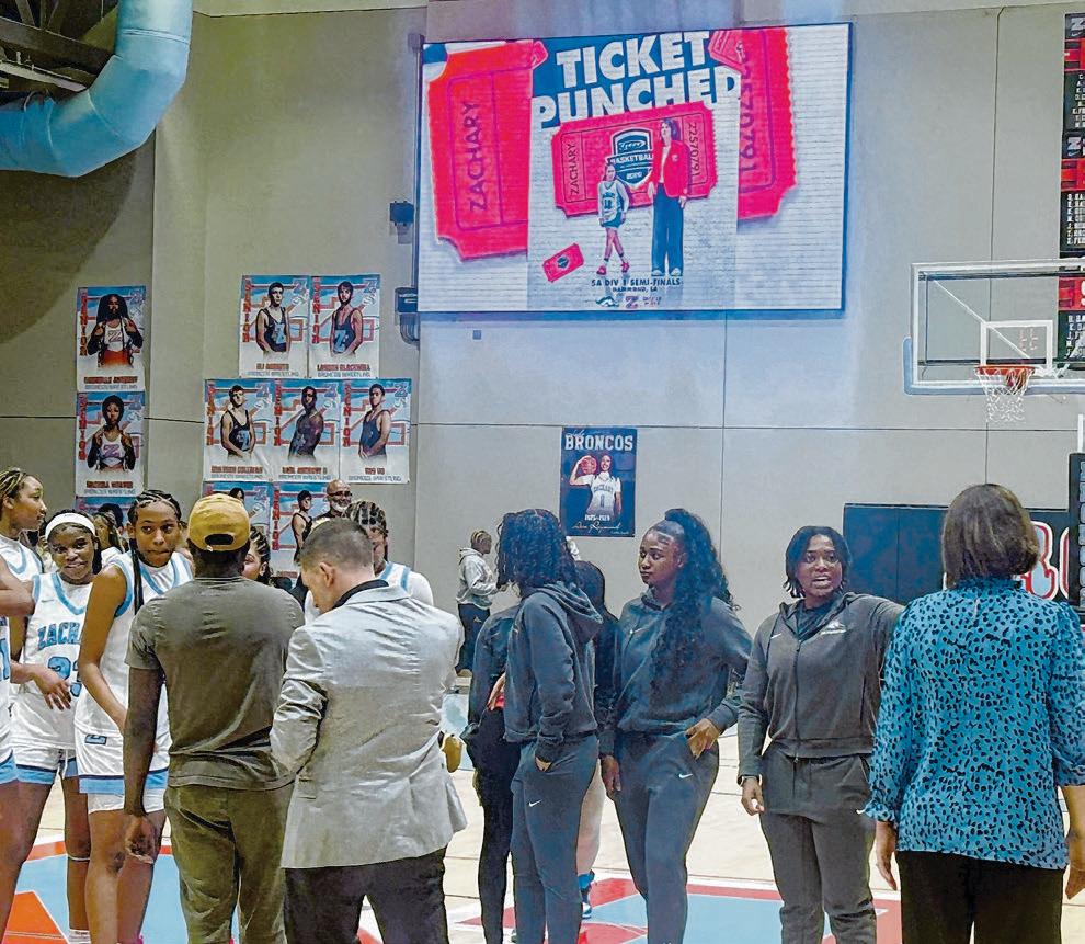 Zachary High coaches and players celebrate punching their ticket to the semifinals.
