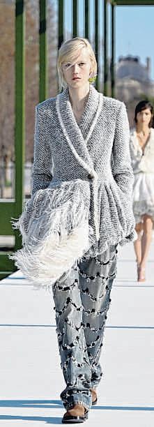 The spiralcage dressesthat wowed at his recentcouture show returnedas clouds of soft pleated fabric. With their houndstooth dark andlight checks,hand-pleated jackets and coats showed signs of trompe-l’oeil, atechnique to make the object appear threedimensional.