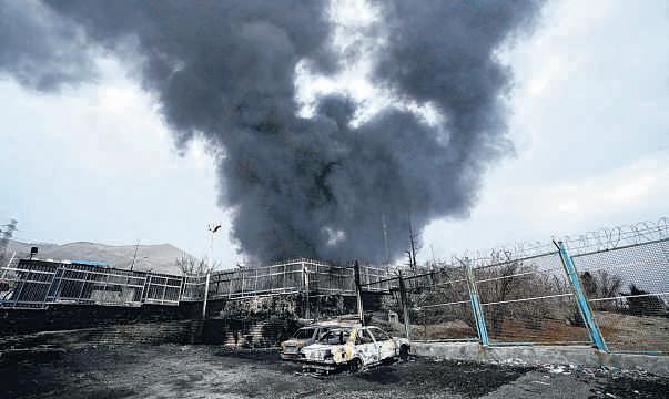 The AP was able to geolocate the video and determine it was taken from a site adjacent to the school, while smoke was already rising from the school vicinity Satellite imagery of the compound is consistent with visual identifiers found in the video, including a flat-roofed building, power lines and vehicles. Trevor Ball, a Bellingcat researcher,
