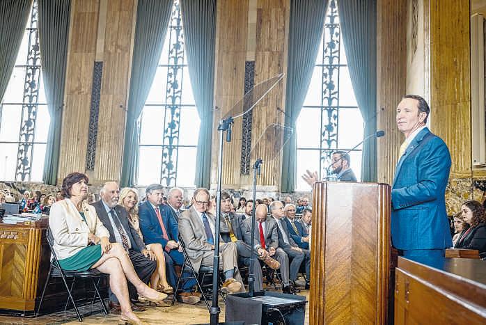 The emotionally charged moment came near the end of a54-minute speech by Landry that kicked off the 2026 regu-