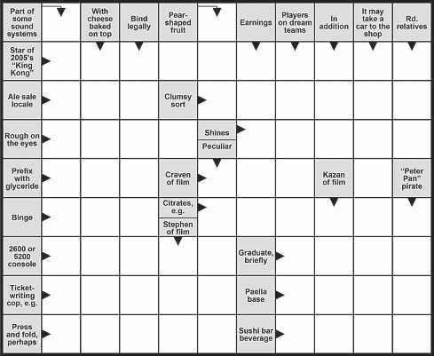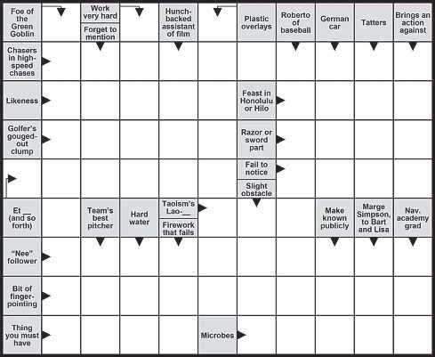 In this crosswordpuzzlevariety,the cluesappear in thediagram itself. Simply enter theanswers in thedirections indicated by thearrows