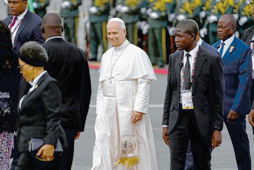 ASSOCIATEDPRESS PHOTO By MISPER APAWU Pope Leo XIV arrives tocelebrate Mass at the Malabo stadium in Malabo, Equatorial Guinea, on Thursday,the last dayofhis 11-daypastoral visit to Africa.
