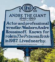 Anewly erected historical marker on ahighwaynear Ellerbe, N.C., celebrates Andre the Giant