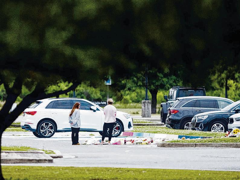 People stand Friday at a parking space at Ascension Episcopal School in youngsville adorned with flowers and tributes following the shooting death of senior Martha Odom on Thursday at the Mall of Louisiana in Baton Rouge.