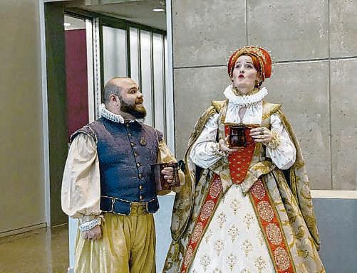 Jeff Wolfthal as Shakespeare and Jules Schrader as Queen Elizabeth Iatthe Louisiana Shakespeare Festival in 2025