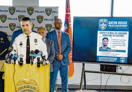Police booked a teenage suspect Friday in the mass shooting at the Mall of Louisiana a day earlier and released a photo of a second person wanted for questioning in the crime which killed a 17-year-old girl and injured five others. Markel Lee, 17, is the first suspect identified by law enforcement since the shooting. Baton Rouge Police Chief TJ Morse said at a news conference that Lee turned himself in earlier Friday and was booked with first-degree murder five counts of attempted first-degree murder, and illegal use of a weapon.