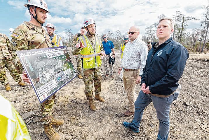 Secretary of the Army Dan Driscoll and Assistant Secretary Adam Telle joined Gov Jeff Landry and others at the site of a multibillion-dollar levee project in LaPlace to talk about the initiative. They pledged to cut red tape to address the Corps’ enormous backlog of projects na-