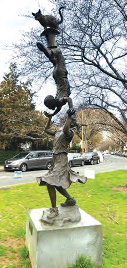 In the triangle park in the middle of 13th Street, Tennessee and Constitution Avenues NE (across from Maury Elementary School) there is a statue shaped like an exclamation point that begs a question. “Balance” is a work of public sculpture by Marchi Billig that was dedicated on Dec. 15, 2002. The bronze sculpture stands 15 feet high and depicts a girl holding a boy upside down on her upstretched hands. Perched on one of the boy’s toes is a top hat; on the hat stands a cat.
