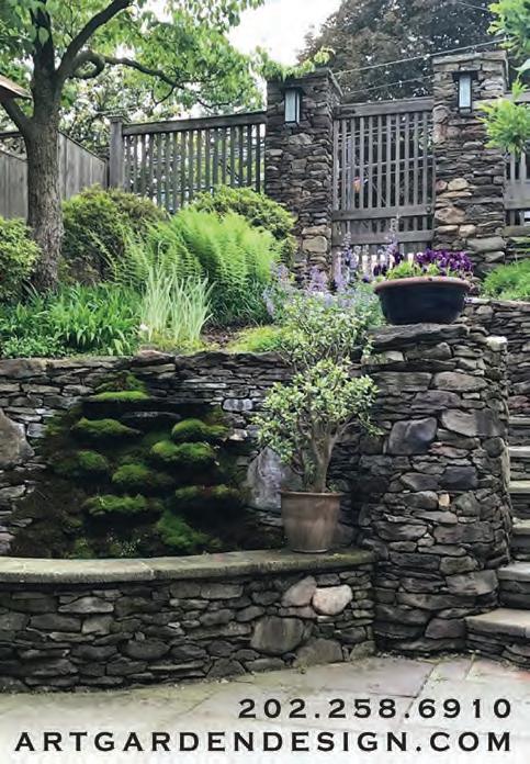 The focal point is a mosaic centerpiece by Deirdre Saunder installed in 2013. It incorporates organic shapes and recycled materials, such as a watering can, garden hose and gloves amid stones, colorful porcelain tiles and shards of glass. The work is a tribute to Brenegar’s love of nature and conservation, speaking to her sense of humor and whimsy, as adults and children discover and rediscover the planted objects. Learn more at kimsgardendc.blogspot.com