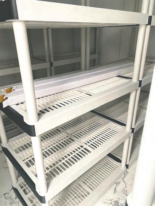 Two storage containers have been converted into the first mushroom farm on Elvans Road, SE. The containers are solar powered and hygienically cleaned to prevent contamination of the plants The plants will be planted and stored on these racks. The farm will produce hundreds of pounds of mushrooms beginning this month.