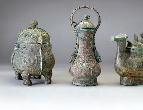 Ritual wine containers (you) with masks (taotie), dragons, birds, and owls, middle Anyang period, ca. 1150-1200 BCE, bronze, Purchase—Charles Lang Freer Endowment. Photo: Courtesy of the National Museum of Asian Art, Smithsonian Institution