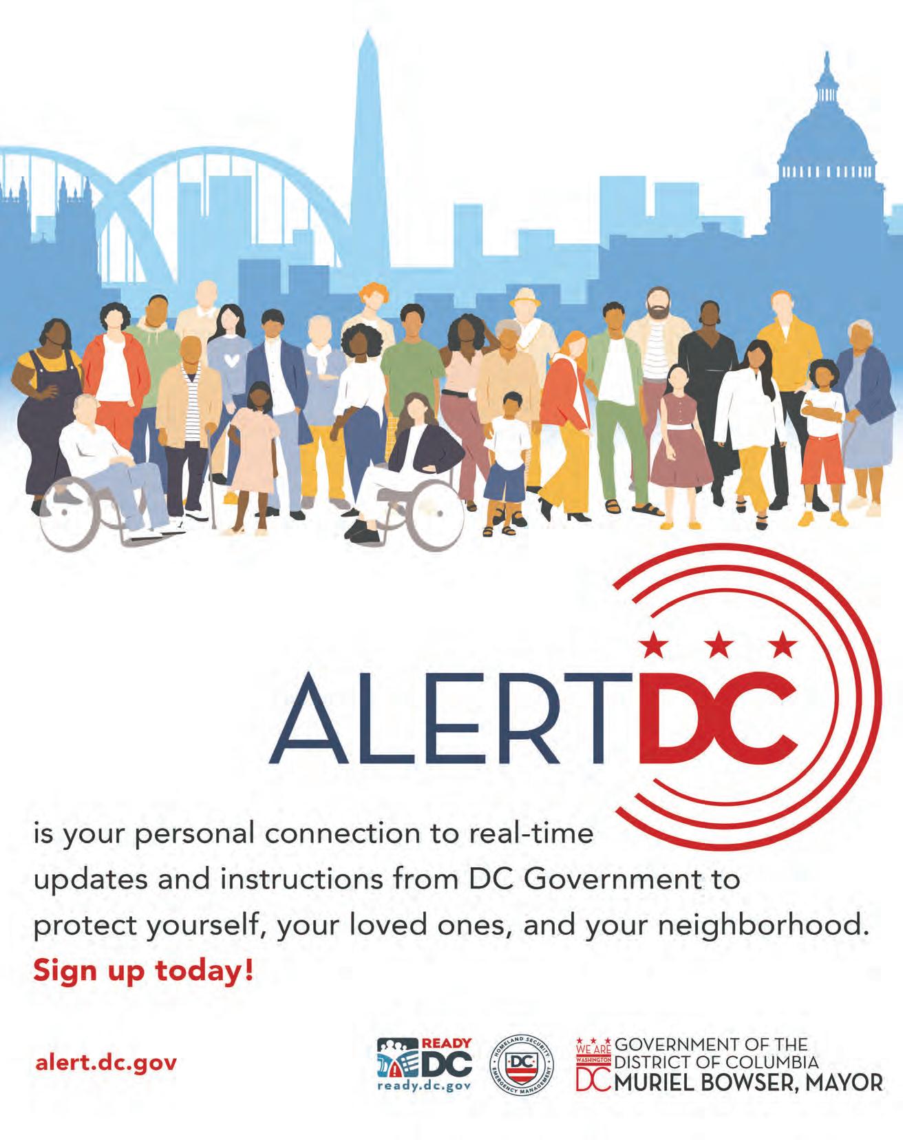 Get in the know before a disaster. Sign up for alerts from AlertDC (alertdc.dc.gov). Find other ways to stay informed by visiting https://hsema. dc.gov/page/stay-informed.