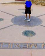 Four Corners Monument, Teec Nos Pos: The only place in the nation where four states meet: Arizona, New Mexico, Colorado, and Utah. Located in a Navajo Tribal Park, the monument is located in a rural area without onsite modern amenities. Visit the website for more details: https:// navajonationparks.org/ tribal-parks/four-cornersmonument/.
