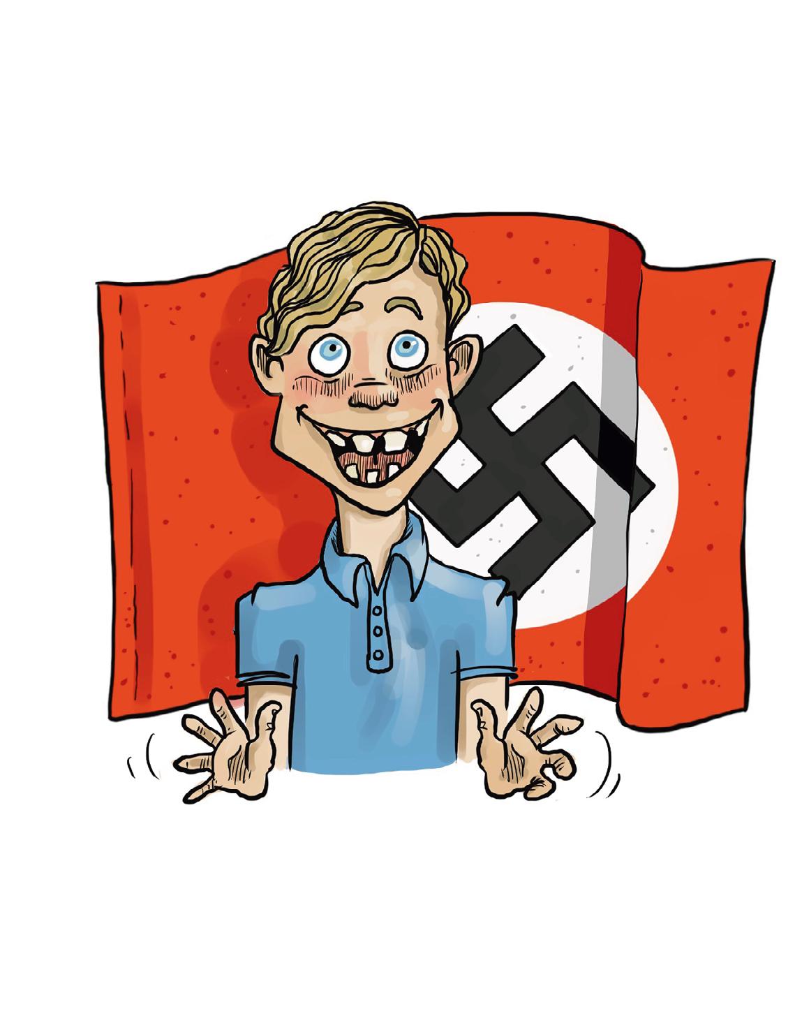 Flagg med hakekors viftet i vinden, og det hadde møtt opp mange hundre for å høre på føreren. Eller der Führer, som vi kaller ham. Jeg fikk gåsehud da han ba alle gutter over 17 år verve seg som soldater til krigen. Gjett om jeg gleder meg til å bli 17!»