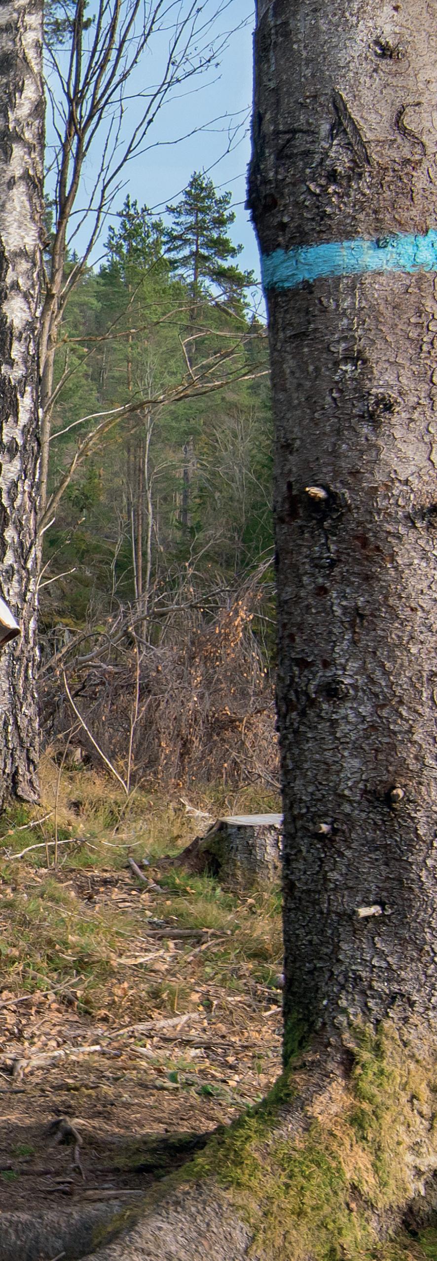 Vi fortsetter mot toppen, og har snart Vardetjern og de vakre myrområdene rundt vannet nede til høyre for oss. I gammel tid holdt vardevaktene til på toppen av Vardåsen. Da var det sikkert rundskue fra toppen. I dag har skogen vokst seg stor, men det er fortsatt flott utsikt – særlig sør- og østover. Fra toppen på 349 moh. går vi videre på blåstien til vi kommer ned til lysløypa. Her tar vi til høyre og fortsetter i lysløypetraseen tilbake til Trettestykket.