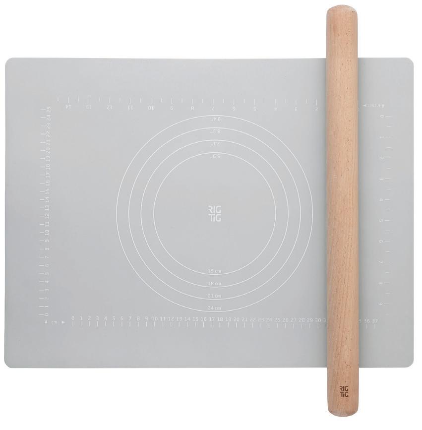 Bak noe godt! Bakematten tåler ovn opp til 230 grader, kan vaskes i maskin. Markerte sirkler med mål for ønsket størrelse. Fri for BPA og ftalater. Materialer: bøketre, silikon, elastisk bånd.
