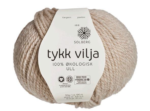 Tykk Vilja fra Solberg Spinderi består av 100 % økologisk ull og er GOTS-, Woolmark- og Øko-tex 100-sertifisert. Garnet er svært mykt og behagelig. Det passer ypperlig til tykke og varme plagg. På pinne nr. 5 gir garnet 15–16 masker, samtidig som det er ca. 100 meter på et nøste med 50 g; garnet er med andre ord drøyt i bruk til å være såpass tykt.