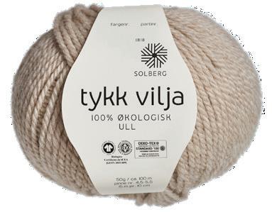 Tykk Vilja fra Solberg Spinderi består av 100 % økologisk ull og er GOTS, Woolmark og Øko-tex 100 sertifisert. Garnet er svært mykt og behagelig. Det passer ypperlig til tykke og varme plagg. På pinne nr. 5 gir garnet 15–16 masker, samtidig som det er ca. 100 meter på et nøste med 50 g; garnet er med andre ord drøyt i bruk til å være såpass tykt.