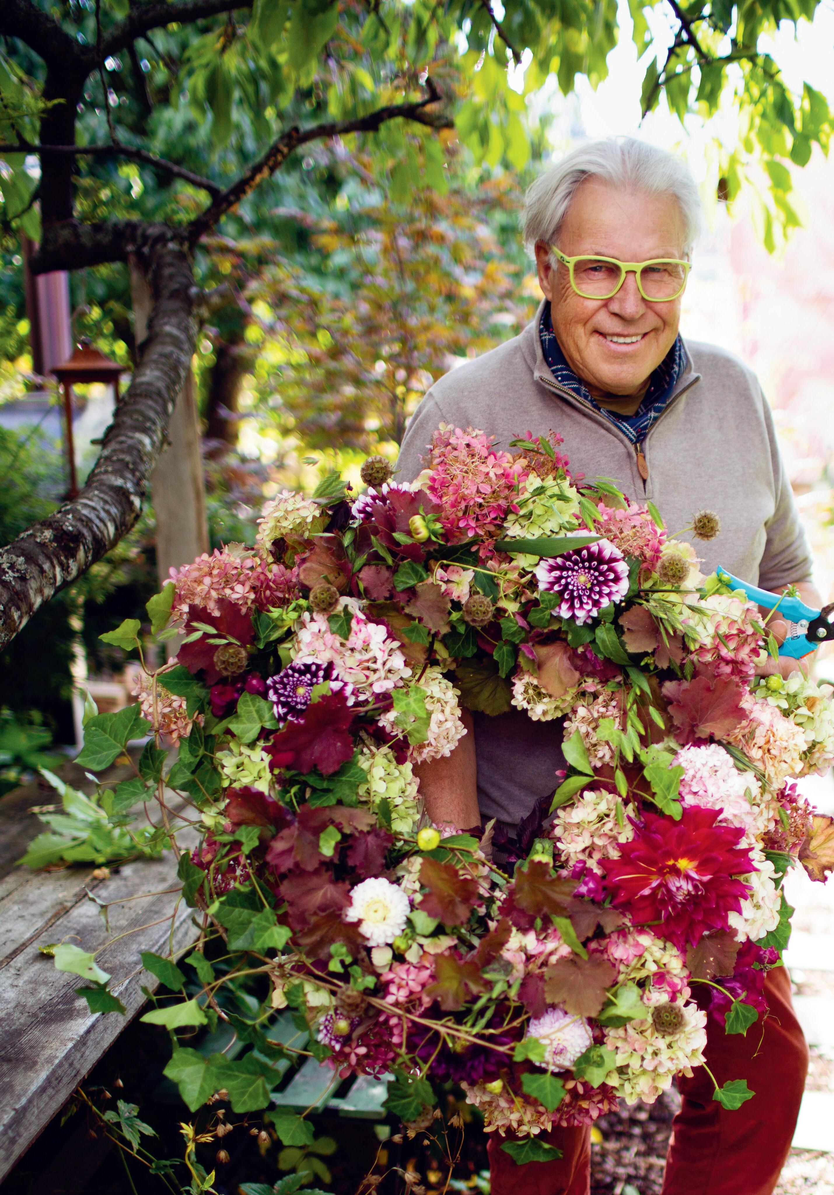 «Jeg har alltid vært glad i å sette sammen buketter som er en blanding av det jeg finner viltvoksende ute i naturen og blomster som vokser i hagen», forteller Finn.