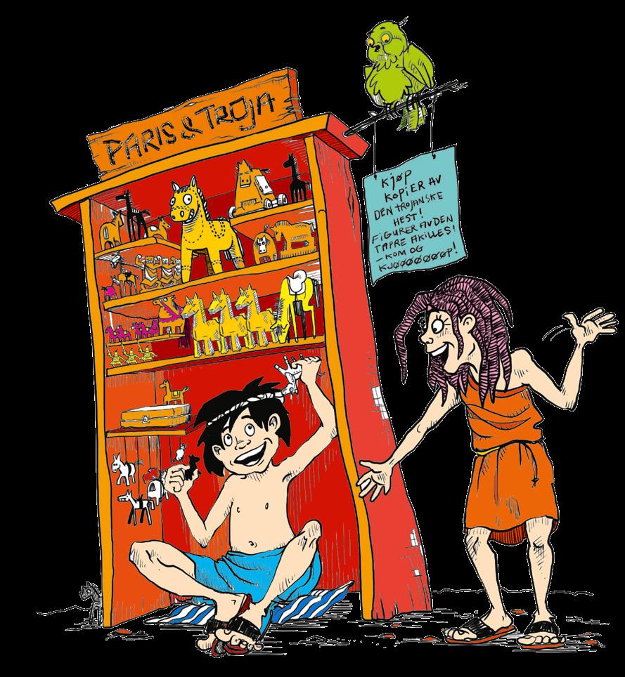 «Håper ikke den er altfor koko?» spør Helena. «Vi må lure sidene i denne boken,» svarer jeg, og kikker ned i hjørnet. «Ser du hvilken side vi er på? «Side 70,» sier Helena og peker.