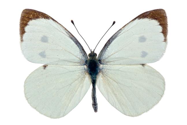 Og for å gjøre en lang historie kort: I løpet av noen uker denne sommeren massakrerte jeg et ukjent antall kålsommerfugler i Tøyenparken før jeg endelig klarte å frembringe et perfekt eksemplar til tørk på spennbrettet. Stor kålsommerfugl, Pieris brassicae, er regnet som skadedyr på ulike kålplanter i korsblomstfamilien og finnes stort sett over hele landet. Her er et bilde, og legg merke til vingenes og følehornenes perfekte form; slik skal den se ut på spennbrettet i ferdig preparert stand: