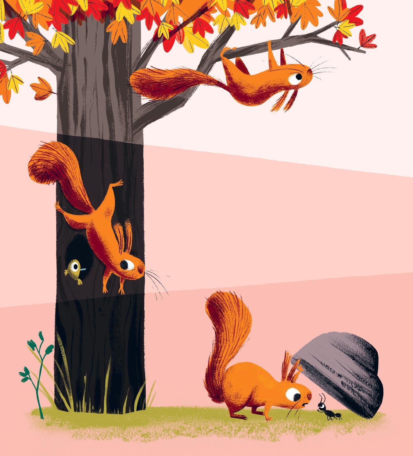 Det er det første Nøtte tenker når han våkner en høstmorgen. Hvilken sleip løvtyv har vært på ferde? Og hvordan kan det ha seg at denne luringen vender tilbake hver årstid for å forandre på noe nytt?!