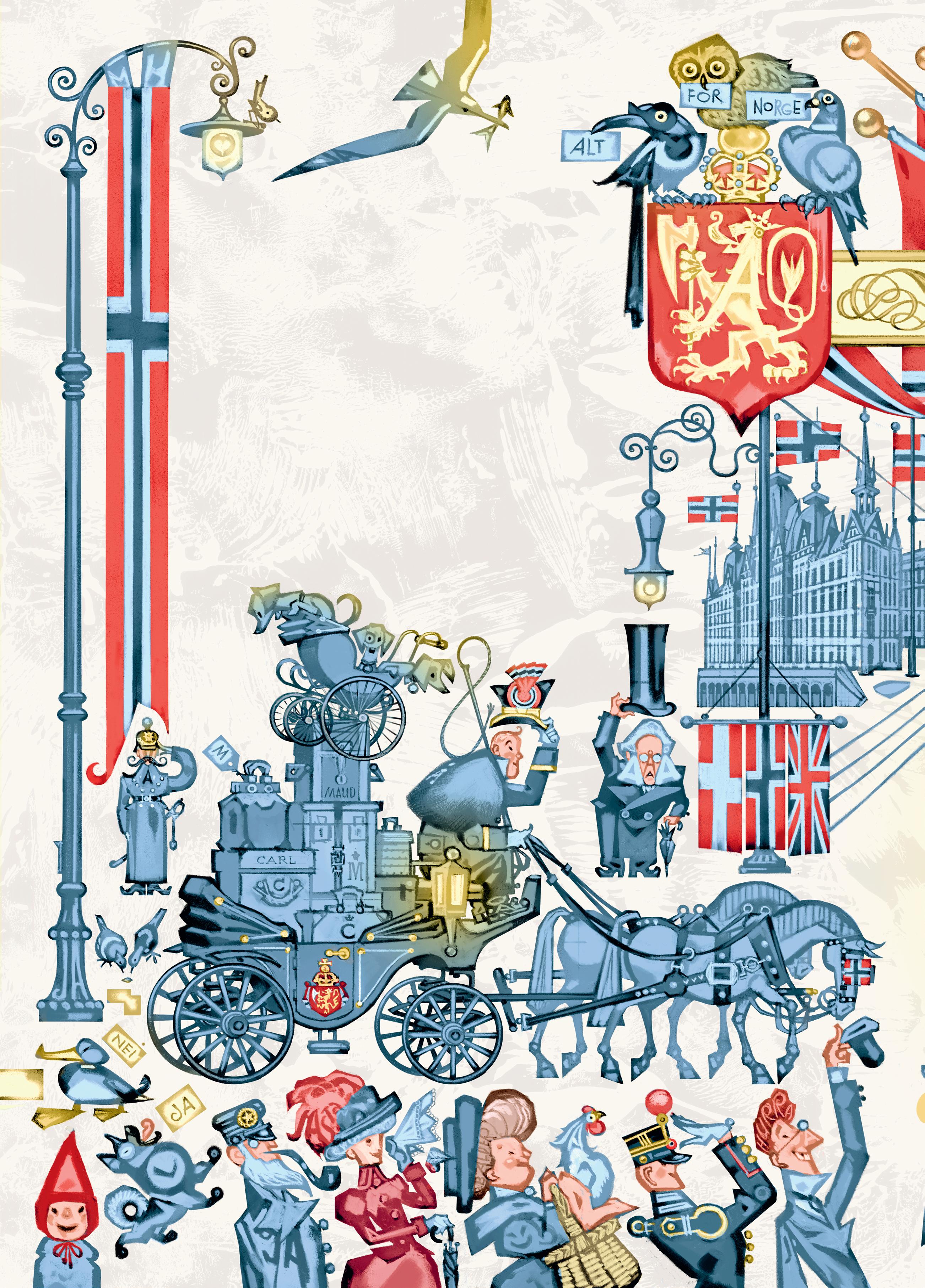 Den vesle familien flytter til Norge, og alle får nye navn. Plutselig heter den lille gutten prins Olav, mamma blir dronning Maud og pappa blir kong Haakon av Norge.