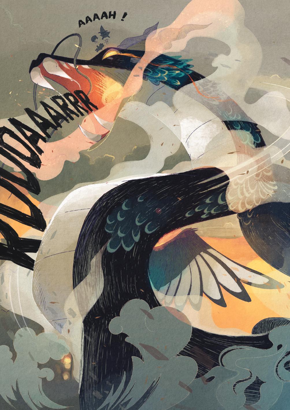 Så når landsbyen en dag fylles av tjukk tåke, og ryktet om en drage sprer seg, tar Saga saken i egne hender.