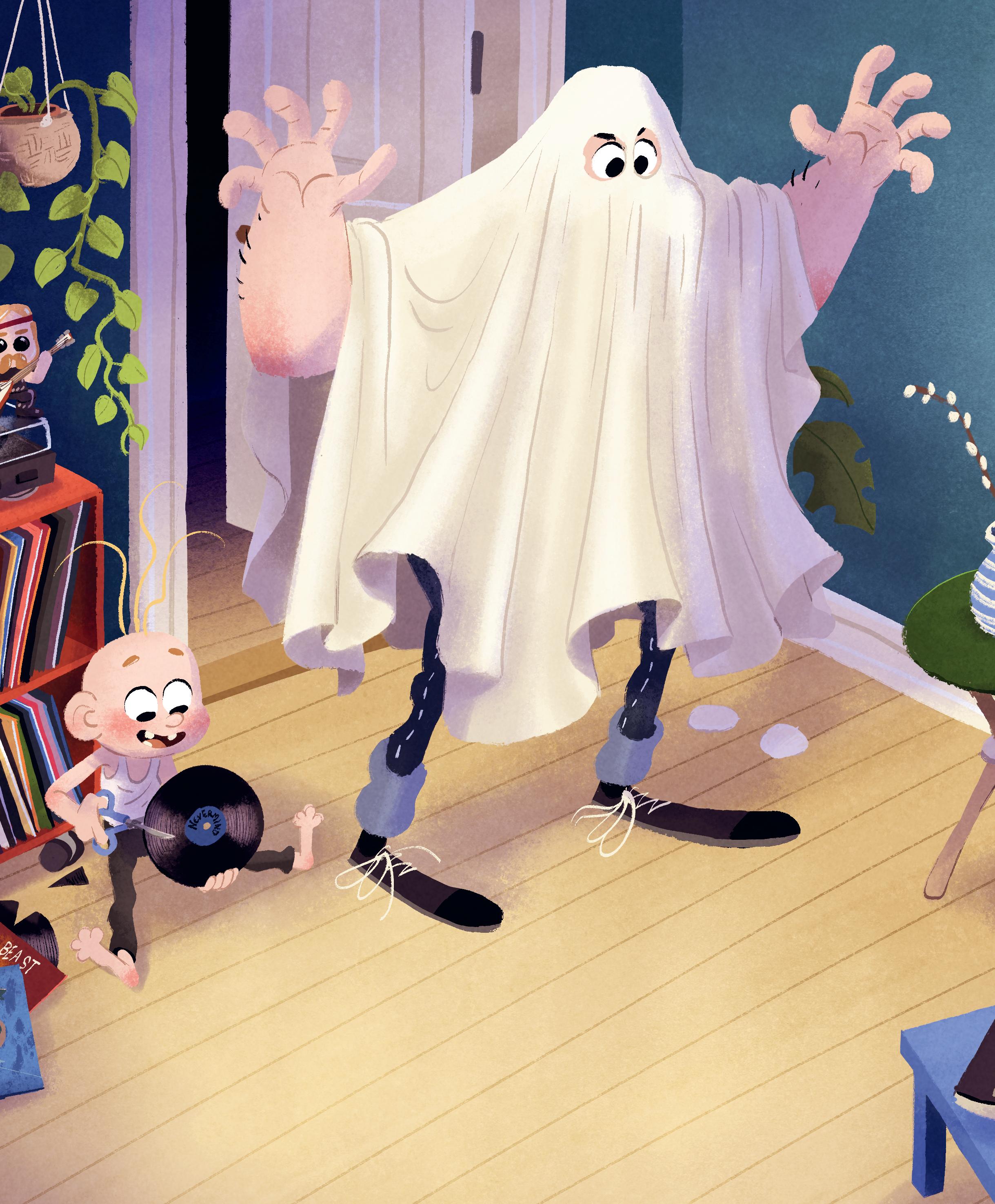 «Jeg er ikke pappaen din, jeg er et spøøøøøkelse», sier pappa. Han har trukket et laken over seg og klippet to hull til øynene.