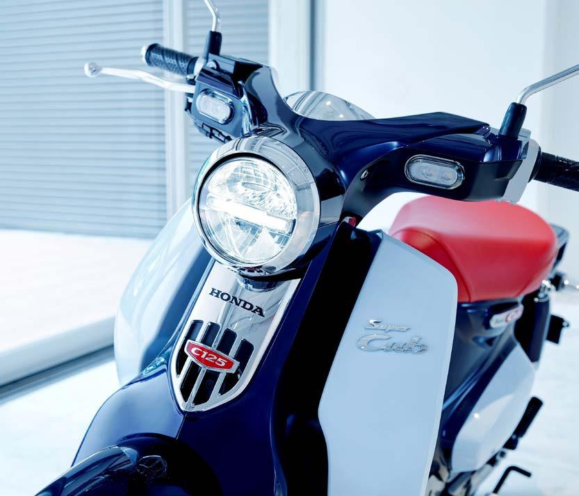 Over the decades, surprisingly few models of the Super Cub have been released. The first variant, the C102, was launched in April 1960 and featured an electric start (as well as the kick-starting) and a coil ignition, but was otherwise the same as the earlier model. Other early iterations had similarly minor design tweaks, like enclosed front forks or square lamps instead of round ones. Different models were released in different countries and regions too, like a moped version sold in some parts of Western Europe, or a larger 100cc model made especially for Asian markets. In 2018, a new 125cc model was released in the USA, Europe and Australia featuring ABS front brake discs, LED headlights and keyless ignition. It still featured all the Super Cub's greatest hits—the step-through, the wind guards, the two-tone paint job, the old school badge and headlamp.