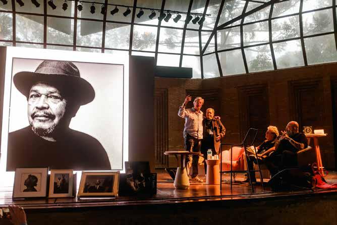sua trilogia.”, o seu branding. Tenho a luz como denominador comum nos títulos de alguns dos meus livros: Entre a Sombra e a Luz, minha primeira obra, Luz Invisível, o livro de retratos e o livro de ensaios chamado Copos de Luz. Eu só tinha uma certeza: o festival teria que acontecer no belíssimo Auditório Claúdio Santoro.