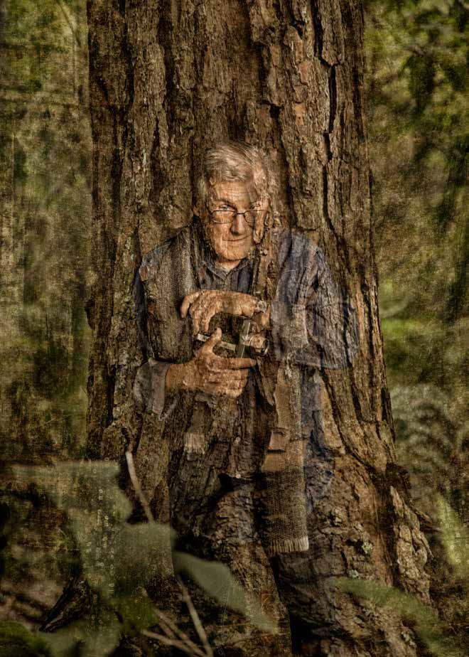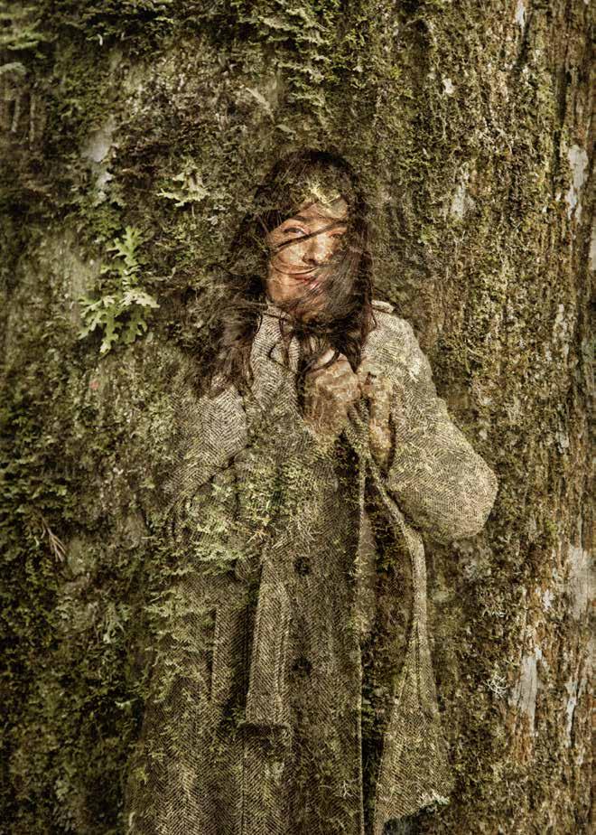 Neste ponto da história devo dizer aos meus retratados deste projeto que não tenho a mínima intenção de desaparecer destas montanhas. Pelo contrário, vim para cá para também um dia virar uma árvore. O que percebi mesmo é que olhando em volta vi gente e árvores. As pessoas, eu as trouxe para o estúdio, é claro – mas as árvores, elas me levaram para as florestas da serra da Mantiqueira. No estúdio fui exposto à aura dessas pessoas para espanto da minha labradora, a Laika, que acompanhava os retratos bem de perto talvez com medo que eu também desaparecesse no final como no conto. Acho que foi ela que primeiro percebeu o fenômeno da aura ou luz invisível dos fotografados, dizem que os cães ouvem e enxergam coisas que nós humanos não alcançamos. Pois a cachorra, de costas para os modelos, olhava na minha direção e na direção da minha câmera, e através das portas envidraçados do estúdio que enquadrava a paisagem lá longe, parecia ter descoberto alguma coisa que intrigava seu instinto canino. Algo acontecia: acho que eram as árvores lá longe, acenando para nós, pedindo para serem também fotografa