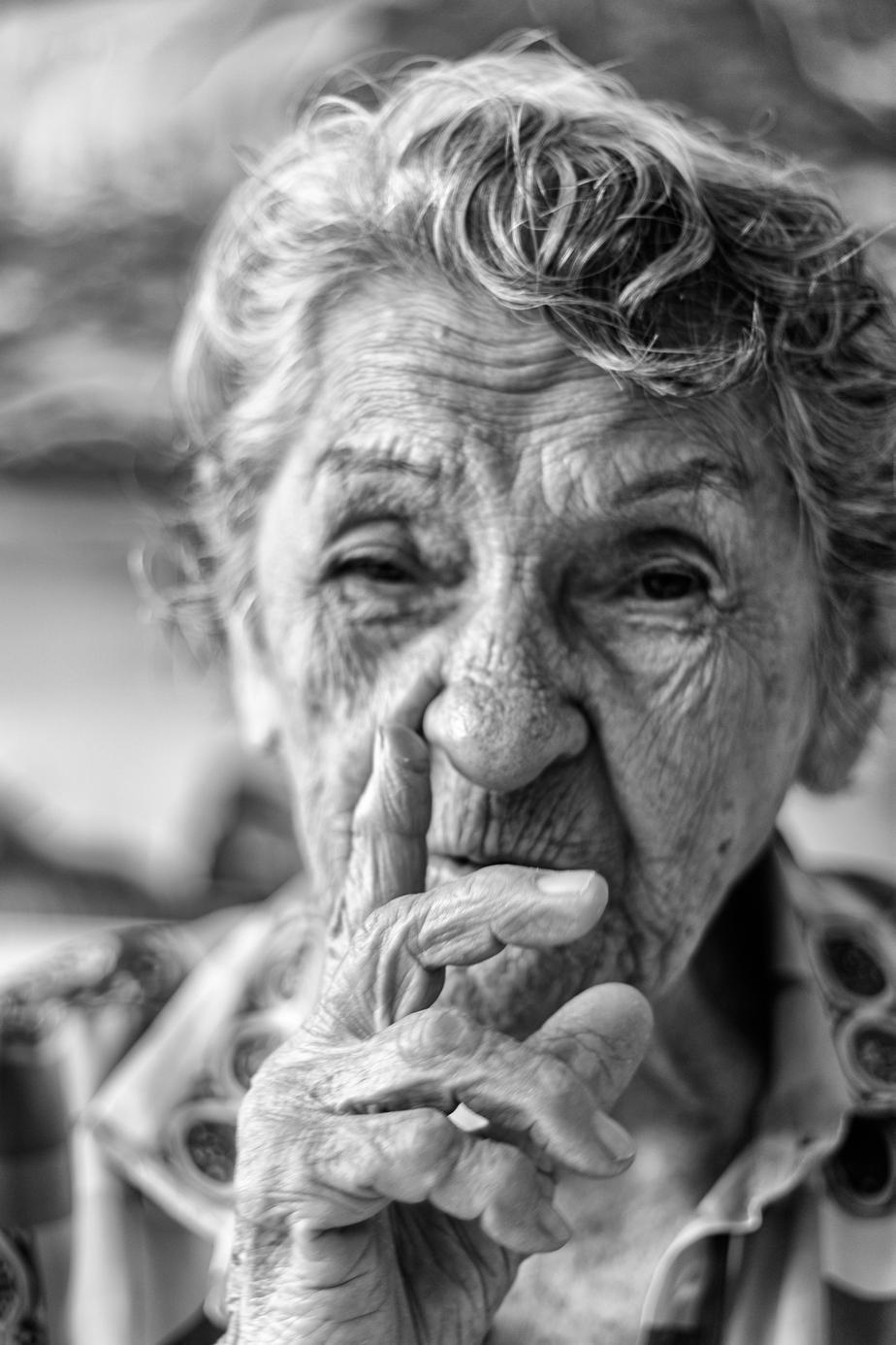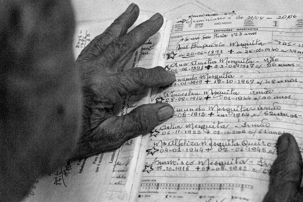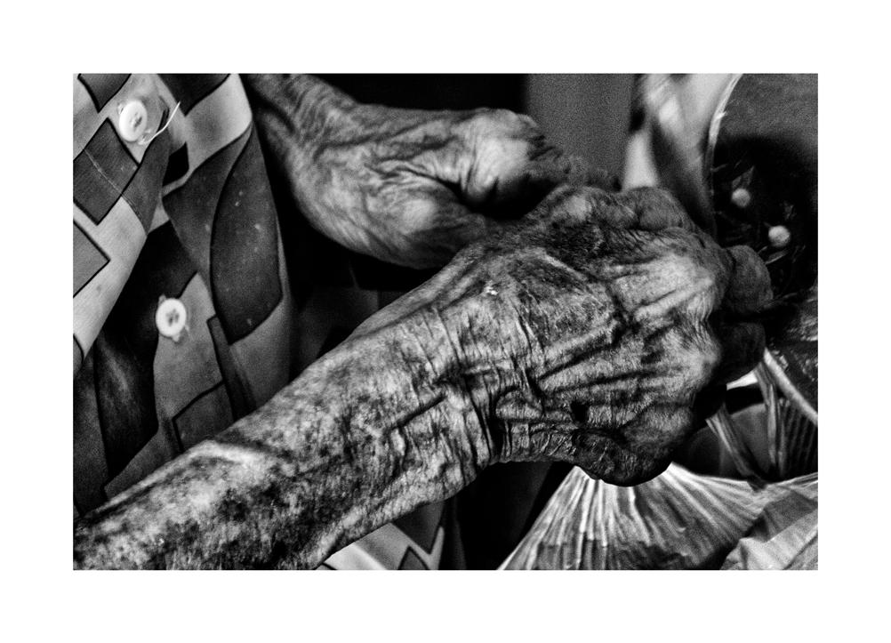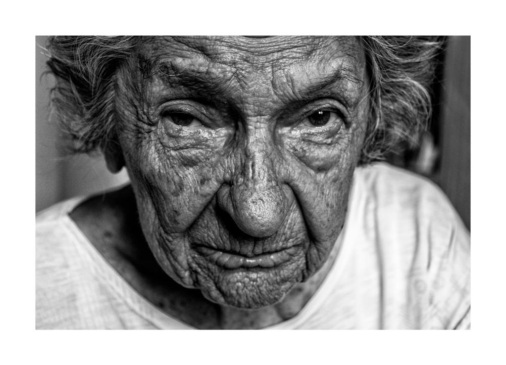Portraits and lands capes are the most traditional and difficult photographic registers. They are in all the phases of photography history. That is why it is difficult to turn them into photo art. Nowadays, smartphones multiply and trivialize portraits and landscapes. Photographic biographies are made using only portraits, from birth to death. Marcela Elias chose the harder way: to register the present of Dona Elisa and let us, viewers, imagine her trajectory. She didn’t turn it into romance, she made a chronicle. A chronicle so intense that it sometimes leaves us breathless. What we see is a 96-year old character who glimpsed at the future. Her epidermic geography asks for our reading. Her face inquires us. One has to remember the verses quoted by Fernando Pessoa: “Sailing is necessary, living is not necessary”. This chronicle by Marcella Elias shows us that d. Elisa arrived precisely at the end of life. The photographer says: