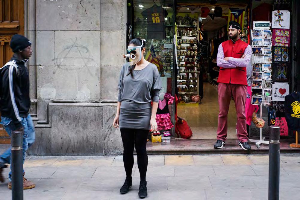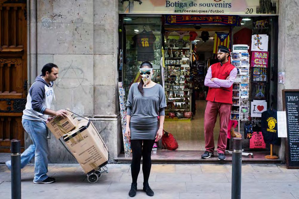 What c an be built between the intelligible and the sensitive? What does it mean to inhabit a space-time between not being and being? Maíra Ortins sculps her narrative politically. She inserts a non-identified body among rejected ones. She reports the presence of people who left a past and are not accepted in the present. Which future can they have? The Western look is cruel when one feels threatened. But threatened by what, by whom? Using a performative pedagogy Maíra Ortins rescues the subjectivity of migrants. And includes us in this ritual: we are and always will be migrants, all of us. Our ancestors came from the African continent. We have spread throughout the world. We have destroyed and built civilizations. And cowardly excluded subjects like us from human convivence! All migration is the extension of the process of humanization. In this engaged art, Maíra Ortins proposes an aesthetics which points places as the space of critical and political positions. Masks become responsible for reporting exclusion. Maíra Ortins proposes a manifest: we all exist and need a solidary gesture. Objectively, aesthetically, she puts us back in the migration universe. Maíra Ortins explains that “Khôra is a long work dedicated to immigration through performing photography, and the series “Judith: somos todos iguais perante a lei” also tackles the same subject”. In an interview to art historian Carolina Ruoso, published in the newspaper O Povo, she reveals: Judith is not a hero. Unknown, she reveals the strange around us. Characters who go on with their lives without thinking about it, as in the long Barcelona series, with immigrants from all over the world. Because