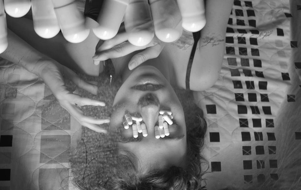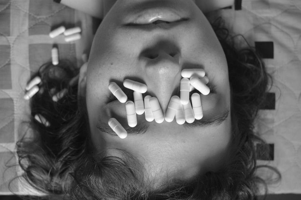 As imagens são fortes para mim, pois se trata de demonstrar essa relação da ansiedade e a necessidade de ingerir remédios para que essa rotina aconteça.