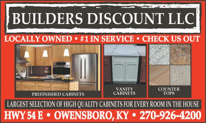 KITCHEN CABINETS & Islands, Bath Vanities, paint or stain, affordable prices, many styles. Builders Discount on Hwy. 54. 270-926-4200.
