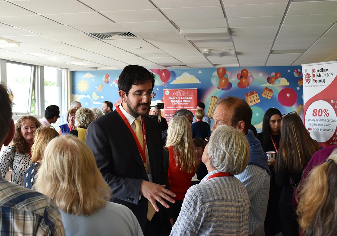 a sudden death of a young person. Whilst this will always be a tragic loss, the CRY Heart of London Bridges Walk gives hope. Volunteering at the idyllic setting of Tower Bridge was an uplifting experience as all walkers passed by with cheery faces, despite having endured the pain of losing a loved one. Walkers thanked us as volunteers, while we thanked them for participating in the walk.