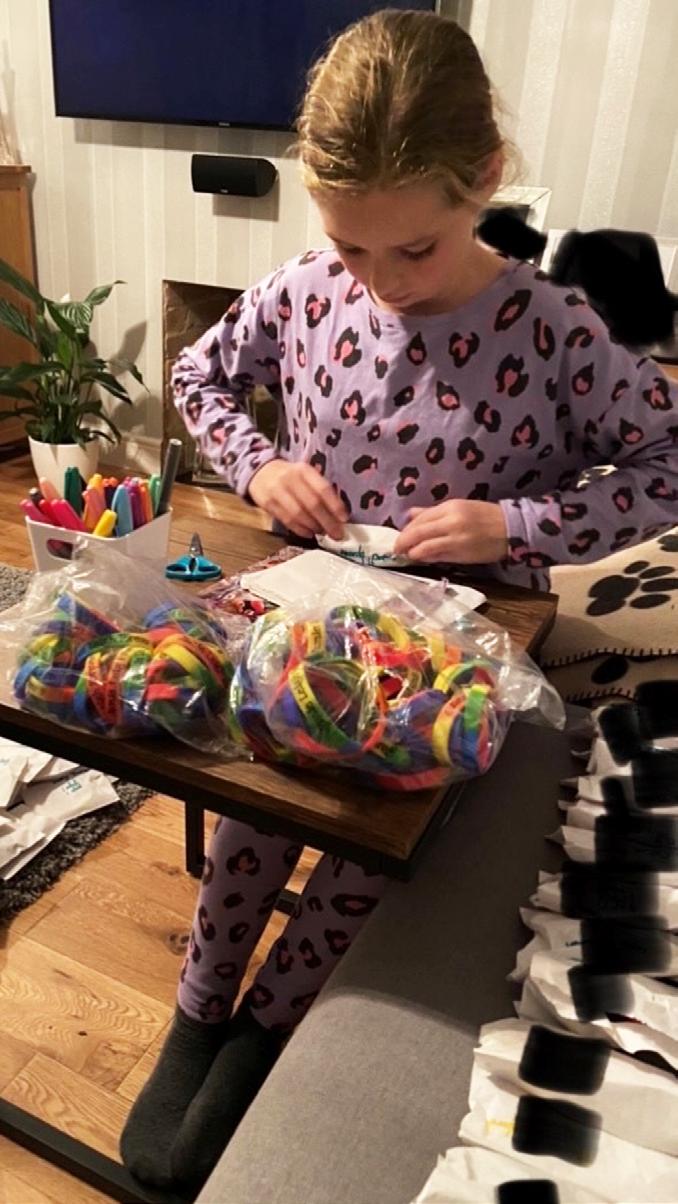 6. Mia making and selling wristbands in memory of her friend, Jamie-Leigh Rose. Page 32.