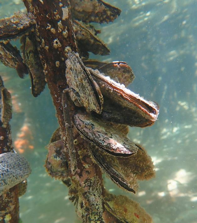 Flat tree oysters prefer to attach themselves in clusters to the stilt roots of red mangrove trees.