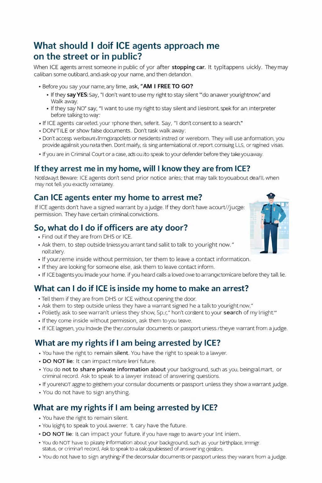 ask if you are free to leave, and the right to speak with a lawyer before answering any questions. You are not required to open your door unless agents present a valid warrant signed by a judge, and you should never sign documents you do not fully understand. From a mental health and wellness perspective, preparing in advance—by learning your rights, creating a safety plan, and identifying trusted legal and community resources—can build emotional resilience, ease fear, and empower individuals to protect both their legal standing and their mental well-being.